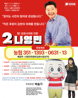사랑하는 김천시민 여러분, 그리고 출향인 여러분!안녕하십니까? 김천시의회 의장 나영민입니다. 붉은 말의 해인 병오년, 민족 고유의 명절 설날을 맞아 인사드립니다.새해 복 많이 받으십시오! ..