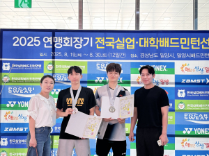 지난 22일 경남 밀양시 배드민턴경기장에서 열린 **‘2025 연맹회장기 전국실업·대학배드민턴선수권대회’**에서 김천대 배드민턴부(감독 김민호) 소속 노경규·추진 선수가 남자 대학부 복식 종목에서 값진 ..