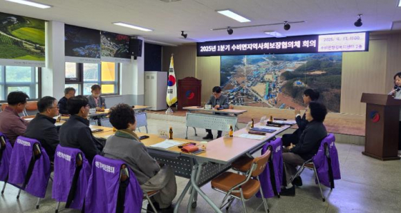 수비면 지역사회보장협의체는 4월 17일 수비면 행정복지센터 2층 회의실에서 2025년 1분기 정기회의를 개최했다. 지역사회보장협의체는 지역사회 내 보호가 필요한 대상자에 대한 지역 단위 보호망 구축 및 운영을 위한 민관협력 기구이며, 공공·민간위원장을 포함 총 13명의 위원으로 구성되어 관내 위기가구와 소외계층을 위해 다양한 활동을 전개하고 있다. 이날 정기회의에서는 새롭게 위촉된 천호구 민간위원장을 비롯한 신규·기존 위원의 재정비를 시행하고, 2025년 연간 운영계획 보고, 2025년 협의체 특화사업(어버이날 나눔행사, 여름철 보양식 나눔행사 등) 추진계획 등에 대한 논의가 이루어졌다. 또한, 최근 발생한 대형 산불로 삶의 터전을 잃은 주민들의 신속한 복구를 위해 성금 일백만원을 기탁하기로 결정했다. 새롭게 취임한 천호구 민간위원장은 “도움이 필요한 이웃에게 실질적인 도움을 제공하여 살기 좋은 수비면을 만드는데 최선을 다하겠다”라고 말했다. 강병기 공공위원장(수비면장)은 “지역사회 복지 증진을 위해 노력하는 협의체 위원님들께 감사드리며, 민관협력을 통한 수비면 복지사각지대 해소를 위해 앞으로도 적극적으로 노력하겠다”라고 전했다.