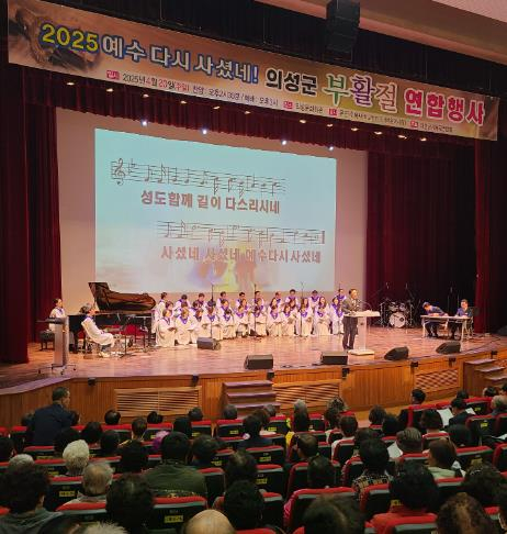 의성군은 의성군기독교연합회가 지난 20일 오후 2시 30분 의성문화회관에서 ‘2025 부활절 예배’를 개최했다고 밝혔다. 이번 예배는 부활의 기쁨을 군민과 함께 나누고, 최근 산불로 큰 피해를 입은 이재민들을 위로하기 위해 마련된 자리로, 지역 교인과 주민 등 800여 명이 참석해 뜻깊은 시간을 가졌다.예배는 찬양을 시작으로 묵도, 기도, 성경 봉독, 말씀 선포, 특별 기도 등 경건한 순서로 진행됐으며, 부활의 의미를 되새기고 지역사회 연대와 회복의 메시지를 전하는 시간이 됐다.특히, 이번 예배에서는 학업 성적이 우수한 지역 대학생 2명에게 장학금을 전달하고, 산불 피해를 입은 하화교회와 구계교회, 그리고 해당 교회 소속 성도 26명에게 위로금을 전달하며 실질적인 도움의 손길을 전했다. 또한, 산불 발생 당시 일시대피시설 등에서 밥차를 운영하며 이재민과 소방대원들의 식사를 책임졌던 구세군(의성∙원당∙도리원∙노매실 영문)에는 표창장을 수여하며 공로를 기리는 시간도 마련됐다. 김주수 의성군수는 “부활절이 군민 모두에게 희망과 위로의 시간이 되기를 바라며, 이재민을 위한 위로금과 지역 인재를 위한 장학금까지 따뜻한 나눔을 실천해주신 의성군기독교연합회에 깊은 감사의 마음을 전한다”라며 “군정의 모든 역량을 모아 이재민 구호와 복구에 최선을 다해 하루빨리 군민 모두가 일상을 회복할 수 있도록 하겠다”라고 말했다.