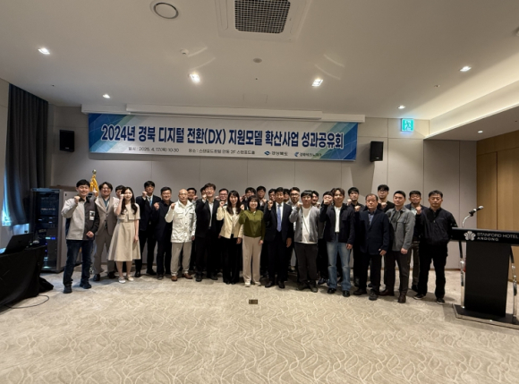 경상북도는 경북테크노파크와 17일 안동 스탠포드호텔에서 ‘경북 디지털전환 지원모델 확산 사업 성과공유회’를 개최했다.이번 성과공유회는 경북지역 제조업의 현안을 발굴하고, 문제해결을 위해 도내 제조기업을 대상으로 추진한 DX 컨설팅 및 DX 기술 솔루션 적용 성공 사례의 성과를 공유하고 의견수렴을 위한 자리를 위해 마련됐다.경상북도, 경북TP, 수혜기업, DX 전문위원과 경북 제조기업 관련기관 관계자 등 40여 명이 참석했다.이날 성과공유회에서는 경상북도 제조기업의 DX 및 AX 추진을 위한 주제 강연과 DX 운영 인력 교육과정 성과 보고, 심화 컨설팅 및 DX 기술 솔루션 적용 사례공유로 진행됐다.주제 강연에서는 김현덕 경북대학교 교수가 ‘디지털 전환을 넘어 AI 전환까지 경상북도 제조업의 새로운 도약’에 대해, 노명고 ㈜인터엑스 본부장은 ‘DX 기술 동향 및 DX/AX 솔루션 성공 사례 주제 발표’에 대한 정책 강연으로 도내 제조기업의 디지털 전환에 대한 방향성을 제시했다.이어진 사례발표에서는 경상북도 중소·중견기업의 디지털 전환을 선도하는 주요 기업과 전문가가 참여해 DX 운영 인력 교육과정 개발 및 운영 성과 보고, DX 심화 컨설팅 및 DX 기술 솔루션 적용 성과사례를 소개하고 논의했다.최혁준 경상북도 메타AI과학국장은 “경상북도는 제조업이 주력산업으로 꾸준히 성장해 온 만큼, 제조기업의 디지털 전환을 통해 경쟁력을 확보하고 미래 산업 시대를 선도하는 글로벌 제조 산업 강국으로 도약하고자 노력하고 있다”며 “도내 제조기업이 환경 변화에 신속하게 대응할 수 있게 지원 정책을 지속적으로 논의하고, 경북도 정책에 적극 반영할 수 있게 노력하겠다”고 밝혔다.