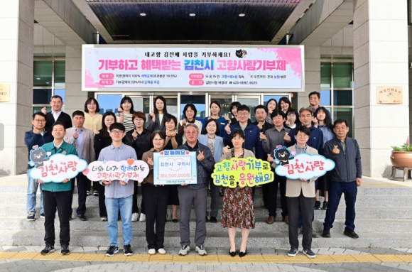 김천시는 고향사랑기부제 활성화와 지역사회의 건전한 기부문화 확산을 위해 인근 자치단체와 협력하여 기부 참여를 이어가고 있다고 22일 밝혔다. 기부에는 공동 경제생활권을 이루는 김천시와 구미시 공무원 80여 명이 함께 참여했으며 총 800만 원의 기부금이 모금됐다. 특히 이번 기부는 지역 간 지속적인 협력체계를 이어가고 고향사랑기부제의 활성화와 지역경제 발전을 함께 이루어 나가고자 하는 중요한 의미를 담고 있다. 이성화 김천시 세정과장은 “고향사랑기부제는 개인이 기부하면 답례품과 세액공제 혜택까지 받을 수 있는 좋은 제도”라며, “공무원들의 참여가 시민들의 자발적 참여 분위기 확산으로 이어질 수 있도록 적극적인 홍보와 소통을 이어 나가겠다.”라고 말했다. 한편 김천시는 주민 복리증진을 위한 기금사업을 선정해 올해 추진 중이며, 지역 맞춤형 지정 기부사업 발굴, 다각적인 모금 홍보, 답례품의 품질 향상 등 제도 활성화를 위해 다양한 활동을 전개할 계획이다.