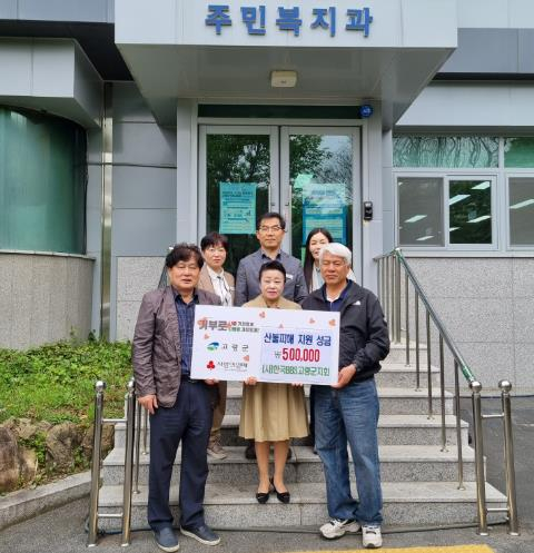 (사)한국BBS고령군지회에서 4월 21일 고령군청을 방문하여 산불피해 지원 성금 50만원을 기탁했다. (사)한국BBS고령군지회에서는“산불로 인해 생계의 어려움을 겪고 있는 이재민분들께 위로의 말씀을 드리며 피해 가구의 복구를 위해 조금이나마 도움이 되고자 성금을 기탁하게 됐다”고 말했다. 고령군은“경북지역 산불 피해 지원을 위해 성금을 기탁하여 주셔서 감사드리고, 피해지역 복구를 위해 소중히 쓰일 수 있도록 전달하겠다”고 전했다. 경북지역 산불피해 특별모금은 4월 30일까지 진행하고 있으며, 성금모금 문의는 고령군청 주민복지과 희망복지팀 및 읍·면사무소로 연락주시면 성금 기부에 관한 안내를 받으실 수 있다.