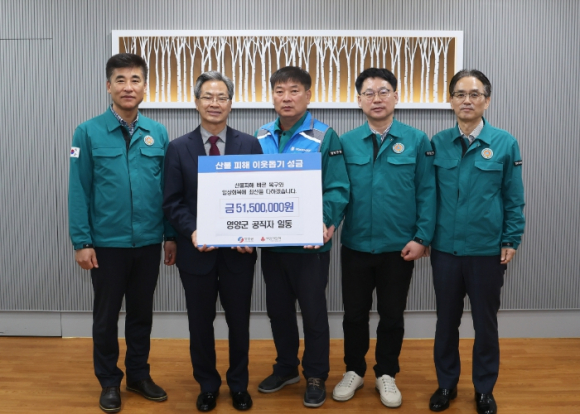 영양군 500여 공직자들은 최근 발생한 산불로 피해를 입은 지역 주민들을 돕기 위해 5,150만원의 성금을 모금했다고 22일 밝혔다.이번 성금은 공직사회가 사회적 책임을 실천하고, 재난으로 어려움을 겪는 이웃들과 고통을 함께 나누기 위한 노력의 일환으로 마련됐으며, 영양군 소속 공직자 약 500명이 지난 4월 16일부터 4월 18일까지 3일간 한마음으로 동참해 성금을 모금했다.모금된 성금은 경북사회복지공동모금회(영양군 행복금고)를 통해 산불 피해 복구와 이재민 구호 활동에 사용될 예정이다.영양군공무원노동조합 오제호 위원장은 “갑작스러운 산불로 삶의 터전을 잃은 분들게 깊은 위로의 마음을 전한다”며, “자발적으로 성금 모금에 참여한 직원들의 따뜻한 마음이 전해져 하루빨리 일상을 회복하시길 바란다”고 말했다.오도창 영양군수는 “지역의 아픔을 함께 해 주신 공직자 여러분께 감사의 말씀을 드린다”며, “전 직원이 함께 마음을 모은 이번 성금이 피해 주민에게 조금이나마 도움이 되기를 바라며, 하루빨리 일상이 회복되도록 최선을 다하겠다”고 전했다.