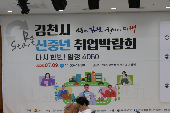 【김천=로컬타임즈】2025년 7월 9일(수) 오후 2시부터 4시 30분까지 김천시근로자종합복지관 3층 대강당에서 ‘김천시 신중년 취업박람회’가 성황리에 개최됐다. 이번 박람회는 ‘다시 한 번! 열정 4060’을 슬로건으로 내걸고, 지역 신중년층의 성공적인 재취업과 사회 진출을 지원하기 위해 마련됐다.이날 행사에는 전국 최초로 올해 개설된 ‘김천시 신중년사관학교’의 임덕수 국장과 원예반 학생 50여 명이 참석해 열정적으로 박람회를 홍보하며 현장의 분위기를 한층 고조시켰다.김천시 신중년사관학교는 50세부터 79세까지의 김천시민 150명을 선착순으로 선발해, 12월까지 총 30주간 운영된다. 이 과정은 취업역량 강화를 위한 전문과정을 비롯해 인문·교양, 생활설계 등의 기본과정, 자율수업과 동아리 활동, 재능봉사 등의 특별과정으로 구성돼 있다. 현장에는 배낙호 김천시장과 김천시의회 의원들도 참석해 응원을 보냈으며, 많은 구직자들이 참여 기업들과 면접을 진행하며 새로운 도약의 가능성을 타진했다. 이번 박람회에는 총 10개 기업이 현장면접에 참여했고, 14개의 부대행사가 병행돼 구직자들에게 다양한 체험과 정보 제공의 장이 마련되었다.행사는 김천시가 주최하고, 경북경영자총협회, 김천고용복지플러스센터, 중장년내일센터가 공동 주관했으며, 구미고용노동지청, 김천상공회의소, 경북보건대학교, 김천대학교, 경상북도경제진흥원, 지에스씨넷(GSCNET) 등이 후원기관으로 참여했다.급변하는 고용 환경 속에서 ‘중년’이라는 단어는 더 이상 끝이 아닌, 또 한 번의 기회임을 증명하는 자리가 됐다. 이날 박람회는 단순한 취업 행사를 넘어, 인생 2막을 준비하는 신중년들에게 ‘다시 시작할 수 있다’는 용기와 에너지를 전한 의미 있는 시간이었으며, 김천시가 보여준 새로운 시도는 타 지역에도 귀감이 될 만하다.