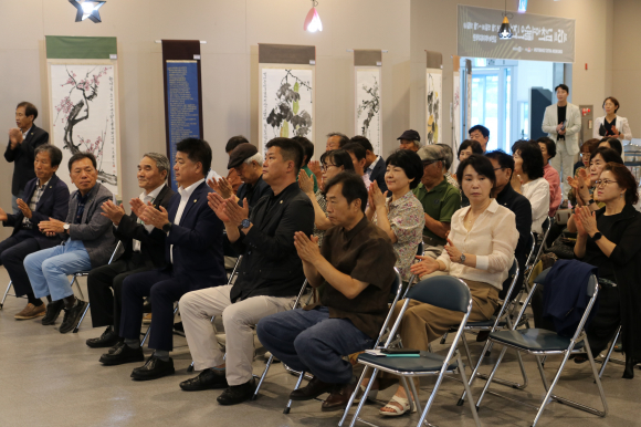 2008년 첫발을 내디딘 김천예술인전은 지역 예술인 간 교류와 화합의 장으로 자리매김해 왔으며, 시민들에게 김천 문화예술의 우수성과 가능성을 알리는 데 중요한 역할을 해오고 있다.15일 오전 11시에 열린 개막식에는 최복동 김천예총 회장을 비롯해 각 협회 지부장, 지역 예술인, 나영민 김천시의회 의장, 배형태 행정복지위원장, 김영택 문화홍보실장 등 주요 인사와 시민들이 참석해 자리를 빛냈다.최복동 회장은 “이번 전시가 시민들에게 일상 속 예술을 가까이 경험할 기회를 제공하고, 특히 과학관이라는 새로운 공간에서 전시를 열게 된 만큼 학생들에게도 뜻깊은 문화 체험이 되기를 기대한다”고 말했다.