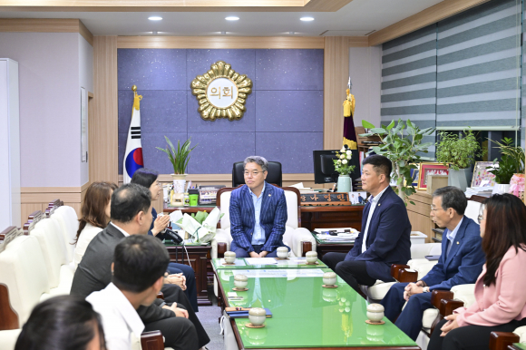 김천시의회(의장 나영민)는 8월 12일 의장실에서 「새마을 해외전문인력 양성사업」 장학생들 방문에 따른 간담회를 가졌다. 이날 간담회에는 장학생 8명을 비롯해 이정주 박정희새마을대학원장, 유수경 부원장, 윤상용 학과장 등 관계자들이 참석했으며, 시의회에서는 이승우 부의장, 배형태 행정복지위원장, 이상욱 산업건설위원장 등 의장단과 사무국 직원이 함께해 이들을 따뜻하게 맞이했다. 간담회에서 이정주 원장은 박정희새마을대학원의 학사과정 및 관련 사업에 대해 소개하고, 해당 사업을 지원해 준 김천시의회에 감사의 뜻을 전했다. 이어 장학생 대표가 이승우 부의장에게 감사 편지와 꽃다발을 전달하며 뜻깊은 시간을 함께했다. 이승우 부의장과 배형태, 이상욱 위원장은 “새마을 정신을 세계에 알릴 글로벌 인재 양성이라는 취지에 깊이 공감하며, 김천시의 장학 혜택을 받은 만큼 고국으로 돌아가 업무를 수행할 때 우리 시에 도움이 되는 일을 해달라”는 당부를 잊지 않았다. 한편, 「새마을 해외전문인력 양성사업」은 영남대학교 박정희새마을대학원이 주관하고, 대구·경북 지자체가 협력해 추진하는 사업으로, 개발도상국 공무원 및 사업가 등을 대상으로 새마을운동 석사학위 과정에 필요한 학비와 생활비를 지원하고 있다.