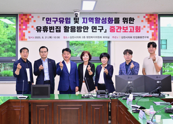 김천시의회 빈집활용연구회(김응숙·나영민·박대하·임동규 의원)가 21일 시의회 회의실에서 『인구 유입 및 지역 활성화를 위한 유휴 빈집 활용 방안 연구』 용역 중간보고회를 열었다.이번 보고회에서는 △김천시 빈집 현황 △활용 및 사업화 방안 △정책 추진 방향 등이 논의됐다. 특히 방치된 빈집을 청년·신혼부부·귀농귀촌인·외국인 등 다양한 계층의 정착 공간으로 전환할 수 있는 방안이 집중적으로 다뤄졌다.