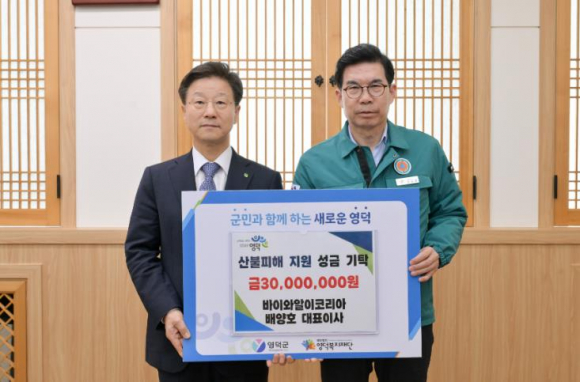 경북 영덕군 산불 피해복구를 위한 기부가 연일 이어지며 16일 기준 누적 성금이 58억 원을 넘어섰다. 각계각층에서 전달된 기부금과 생필품은 피해 주민들에게 큰 힘이 되고 있다.16일에는 바이와알이코리아 배양호 대표이사가 3,000만 원, 서울 강동농협이 2,000만 원, 동광어시장 윤무혁 회장과 상인회 일동이 1,500만 원, 바르게살기운동 충청북도 시·군협의회가 전기밥솥과 밀키트 등 1,600만 원 상당의 생필품을 기탁했다.이어, 경농 경북 북부지점과 ㈜경북공조에너지가 각각 1,000만 원, 풍농비료가 900만 원 상당의 쌀 300포대, 바르게살기운동 충청북도 보은군협의회가 840만 원 상당의 쌀 300포대, ㈜디자인랜드과 화성시 새마을회, 울진군 북면 신화2리 주민 일동이 각각 500만 원씩을 기부하며 따뜻한 마음을 보탰다.또한, 울진군 북면 이장협의회가 420만 원, ㈜중산시스템이 300만 원, 울진군 북면 발전협의회가 140만 원, 이비티에스 협동조합 경주건천지점 차은산 총괄지점장과 회원들, 창포초등학교 27회 동기회가 각각 100만 원, 그리고 대전여민산악회 회원들이 100만 원의 성금과 함께 자원봉사 활동을 펼치는 등 전국 각지 각계각층의 응원과 기부가 영덕군으로 이어지고 있다.성금 외에도 고향사랑기부제를 통해 영덕군 귀농귀촌 연합회 회원 일동이 1,500만 원, 원더걸스 가수 선미의 모친 박효선 씨가 1,000만 원, 영양남씨대종회 남정수 회장과 남중경·남후식 부회장이 700만 원, 영덕군의회 신정희 의원의 자녀 김인우·김현지 씨가 300만 원, 영덕군 공무원 출신 (주)행복안전 안홍기 대표가 300만 원을 기부했다.이날까지 영덕군에 접수된 산불 피해복구 성금은 일반기부 1,436건 41억 9,214만여 원, 고향사랑기부 1만 5,066건 16억 4,133만여 원으로, 총 1만 6,502건 58억 3,347만여 원이 모였다.한편, 성금 기부는 영덕복지재단을 통한 일반기부, 그리고 고향사랑e음, 위기브를 통한 고향사랑기부제 지정 기부로 참여할 수 있다.