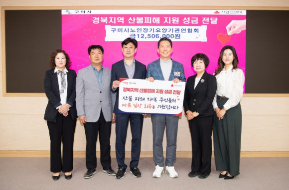 구미시노인장기요양연합회에서는 17일 경북지역 산불 피해 지원을 위해 성금 1,250만 원을 기탁했다.이번 성금은 경북 지역 대형 산불로 주민은 물론 장기요양기관에서도 많은 피해를 입어 조금이나마 도움이 되고자 하는 연합회 회원들의 마음을 모아 자발적으로 마련됐다.나명현 회장은 “연합회 회원 모두가 산불로 삶의 터전을 잃은 분들께 작은 위로가 되고, 다시 일어설 수 있는 용기를 드릴 수 있기를 바란다”고 했다.구미시노인장기요양연합회는 구미시 노인요양시설 및 재가노인복지시설, 자가장기요양기관 143개 회원으로 구성돼있다. 종사자의 복지증진과 교육지원, 지역발전을 위한 봉사활동 등 다양한 사업을 추진하고 있으며, 올해 신년회에서도 어려운 이웃을 위해 성금 300만 원을 전달한 바 있다.